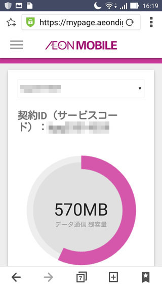 今回は1GBのプランだったので高速切り替えや使用状態などを確認するためにマイページにログインします。