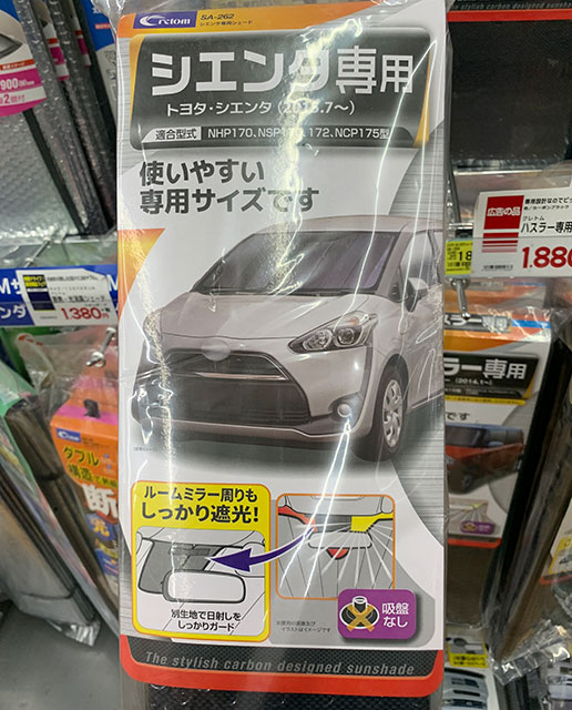 最近は専用サンシェードもけっこうあります。まず目についたのがシエンタ専用シェード
