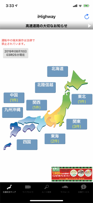 iHighwayというアプリがあっていつも長距離行くときはこれで渋滞を確認します。