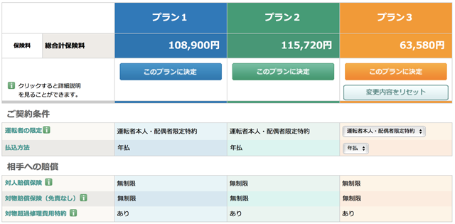 他の条件では安さ爆発のSBI損保。今回は違う結果に