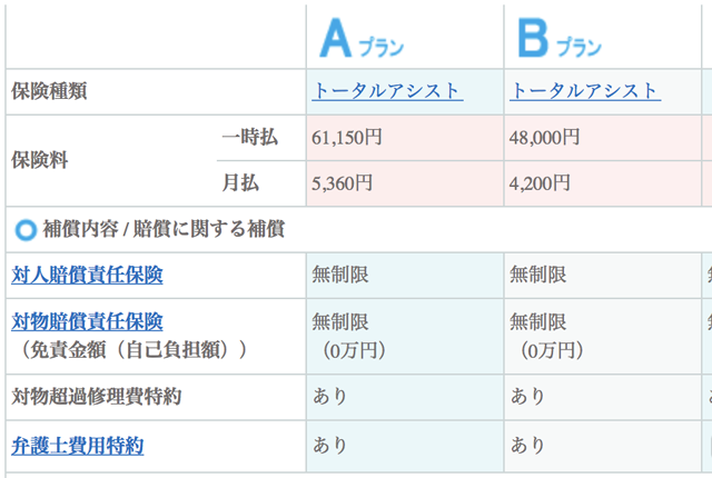 | 対人賠償 | 無制限 | 対物賠償 | 無制限 |