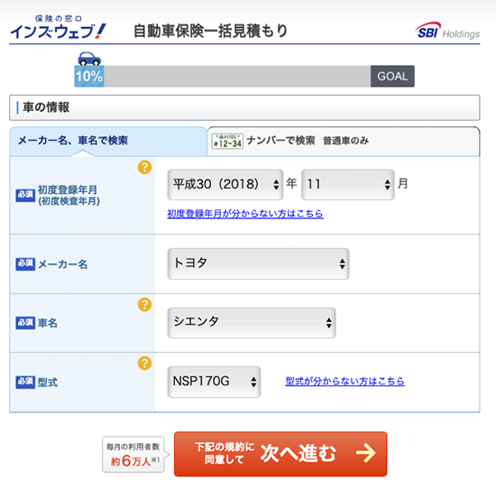 さらに、使用目的、今の走行距離、年間走行距離を答えます。