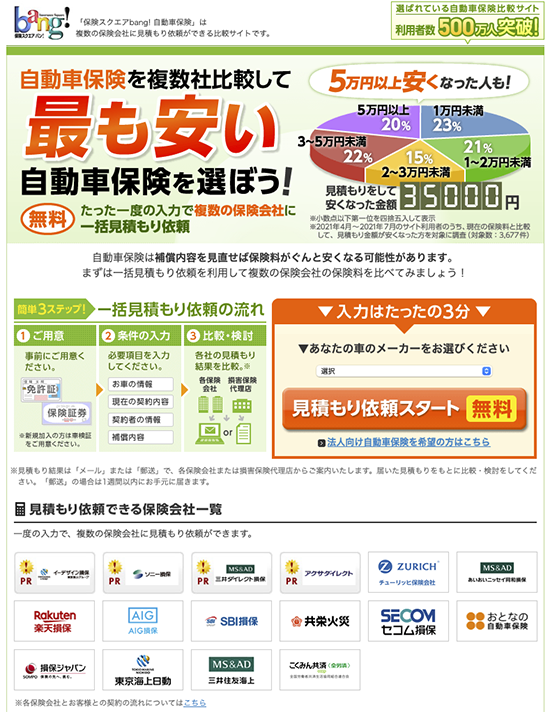 保険スクエアbang!の一括見積もり体験レポート2024版[PR]